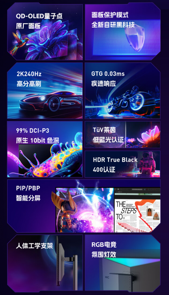 HKC GS27QK的上市,进一步丰富了HKC天启系列的产品线,也为旗舰级OLED电竞显示器市场提供了具有性价比的新选择。相信这款集顶级画质、高刷新率和丰富功能于一身的电竞显示器,让追求超高画质的游戏大作爱好者或追求画面流畅的FPS游戏迷,都能获得沉浸式体验。HKC也将继续致力于技术创新和产品优化,为消费者带来更多高质量的显示产品和解决方案。