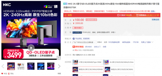 目前GS27QK已经在京东平台开启预售。只需在10月17日20点前预付定金并在10月20日20点前支付尾款,就能享受到3499元的首发到手价。