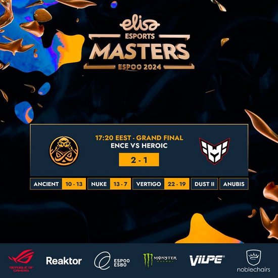 Elisa埃斯波大师赛 2024决赛,ENCE以3-1战胜Heroic,时隔一年多再次夺得赛事冠军!这场比赛gla1ve是队内表现最好的选手,即便已经将近30,他依旧在发挥着自己的余热,帮助ENCE重新站起来,这一次他终于做到了!诸葛雷武似乎在慢慢重回大众视野。