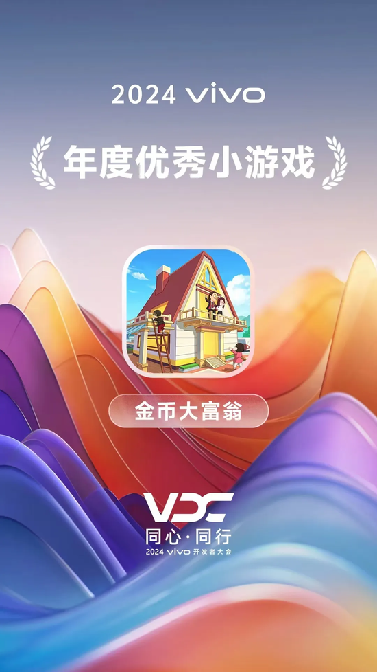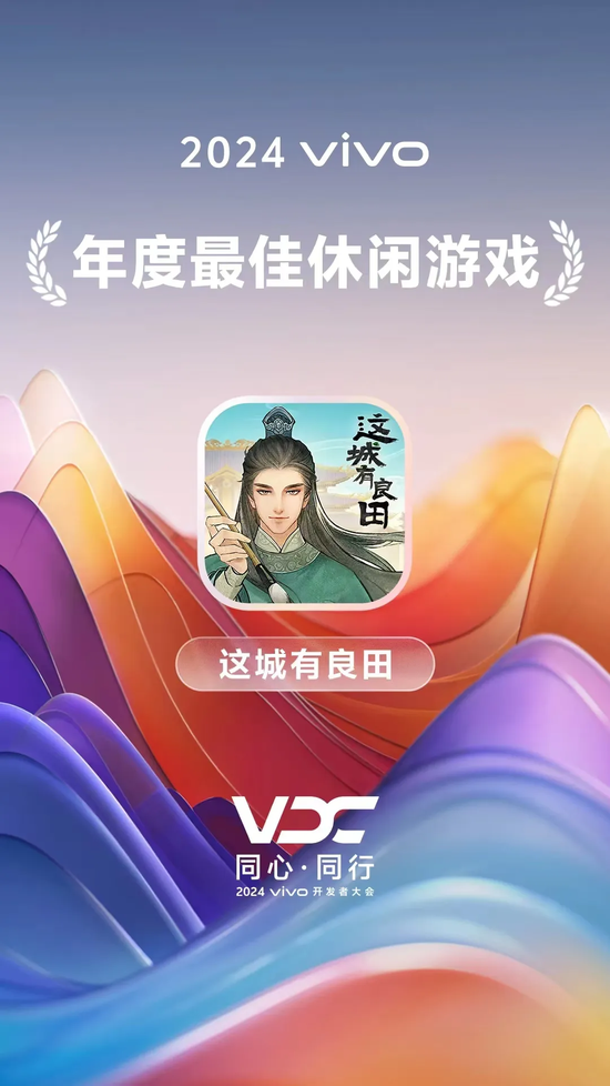 益世界受邀出席,并在会后的颁奖环节,荣获“2024vivo年度最佳合作伙伴”。旗下模拟经营产品矩阵中的头部产品《这城有良田》荣获“2024vivo年度最佳休闲游戏”和“2024vivo年度优秀小游戏”,长线产品《金币大富翁》荣获“2024vivo年度优秀小游戏”。