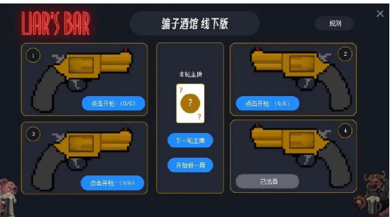 11.每局开始每个玩家的手枪里有“1发实弹”和“5发空弹”