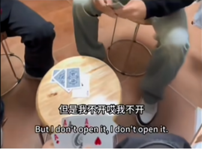 7.上家出完之后,下家可以选择是否开牌,不开牌则轮到下家出牌