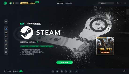PC端的很多玩家都会使用steam平台,因为steam中的游戏种类非常丰富,比如说今天的怪物猎人荒野,也是在steam可以第一时间下载和游玩的。Steam商店同样是海外平台,想浏览游戏,下载游戏也要优化网络。