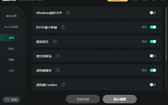 这里可以看到所有的优化项,如果你想对某一单独项目打开或者关闭,也是可以自行选择。