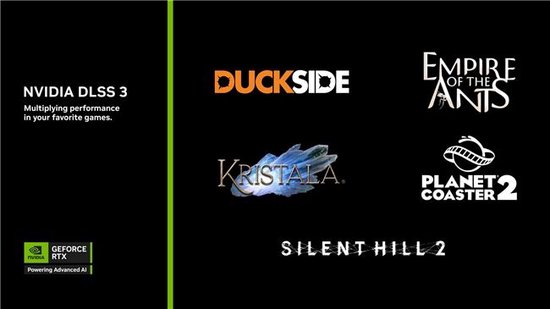 ● 《寂静岭 2》(SILENT HILL 2):由KONAMI发行,Blooper Team开发的备受好评的《寂静岭 2》(SILENT HILL 2)在发布时已经支持超分辨率,现在支持带有帧生成功能的DLSS 3。GeForce RTX 40系列玩家可在4K分辨率将各项设置调至最高时,获得性能倍增,探索《寂静岭 2》(SILENT HILL 2),现在就来体验吧!