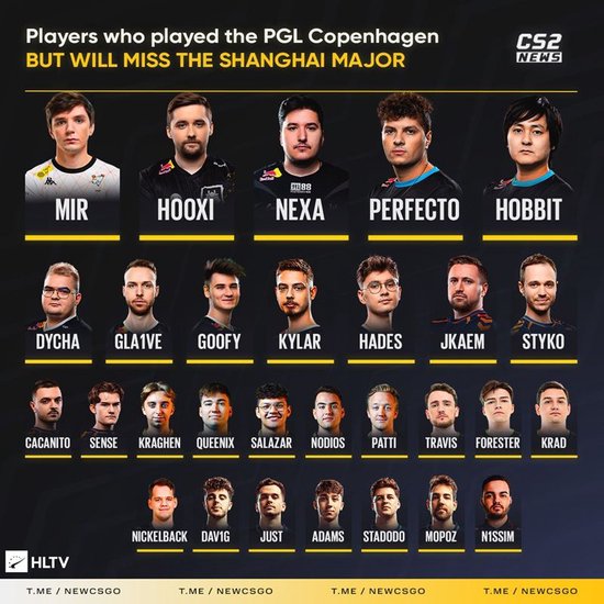 有外媒统计了那些参加过PGL哥本哈根Major但缺席本次上海Major的选手名单。