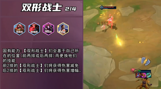 双形战士也是一个比较有意思的羁绊,在前排是一套技能,在后排又是全新的一套。同时也会获得伤害减免或者增强。