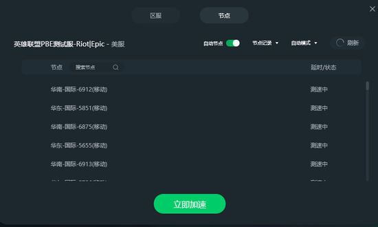 由于新赛季缘故,PBE人数上涨也是必然的,很多玩家排队进不去,或者进度条不动。要解决这个问题,首先确认你是否已经开启了迅游的加速,裸连是一定进不去的。然后就是节点的选择,可以手动更改延迟更低的节点,网络顺畅之后,排队就更轻松了。