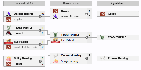 ESL One曼谷站中国区一阶段海选结束,Gaozu、Turtle和XG晋级中国区预选。