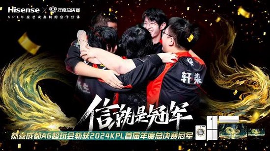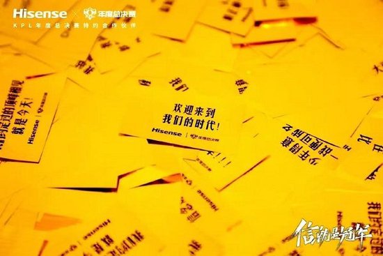 赛前,海信将一诺的宣言制成了金色雨,夺冠瞬间,“欢迎来到我们的时代”字样印在金色闪片上,缓缓闪耀。此时,AG超玩会与海信所倡导的“信就是冠军”的精神实现了契合与共鸣。