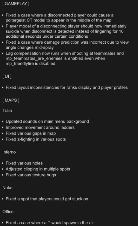 对Nuke地图的光照做了一些改动。活门、坡道和附近的位置现在比以前更亮。