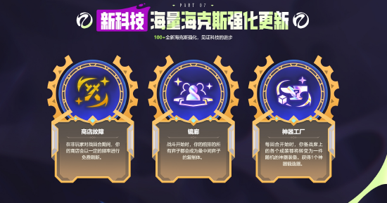 《英雄联盟:双城之战》第二季中个性鲜明的角色让观众们又爱又恨,但除此之外,皮尔特沃夫科技与祖安混乱的鲜明对比同样让人印象深刻。既然是“双城之战2”赛季,怎能少得了见证科技进步的海克斯强化?本赛季,共有100多种全新的海克斯强化。这些海克斯强化不仅贴近《英雄联盟:双城之战》第二季的剧情,同时也会让弈士们在游戏中获得全新的体验!比如正好携带1件装备的弈子可将该装备升级为光明装备的彩色海克斯“重质不重量”,如果你构建的阵容正好每一个弈子都具有不俗的作战能力的话,那么这个彩色海克斯可以说是相当合适;另外,还有银色的海克斯“威力提升”,这个海克斯的效果是让你的下一个强化符文的位阶段提高一阶。也就是说,选择了这个海克斯的话,如果其他弈士们下个强化符文都是金色,那么只有你是获得彩色的海克斯。当然了,还有更多有趣的功能型海克斯。这些都等待着弈士们在“双城之战2”中一一体验吧!