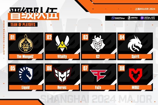 而上海Major淘汰赛对阵赛程也已出炉,淘汰赛阶段采用BO3单败赛制,每一场比赛都是回家局。亚洲队伍The MongolZ将会面对MOUZ,这也是蒙古队在正赛阶段BO1击败过的对手。Spirit会和Liquid碰面,Vitality将会对阵FaZe,G2则要面对HEROIC。