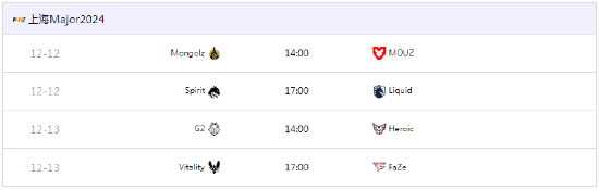 上海Major淘汰赛阶段于12月12日打响,以下为对阵表。