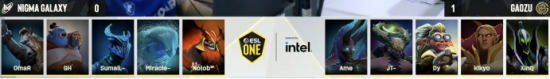 比赛概况:第一局Gaozu虽然前期小劣但阵容还是有优势,血魔团战很克制滚滚,没有了滚滚Gaozu可以无限拉扯正面粉碎Nigma。 第二局中路Nigma电魂打出优势不停带队杀人,无解肥水人也是吃光Gaozu技能依然不死,后期TB也不是神装电魂的对手被推平。