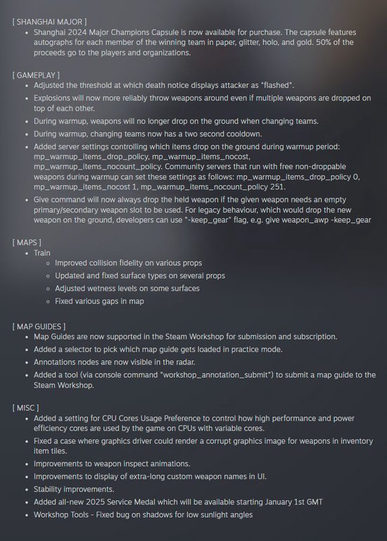 今天CS新版本进行了更新,上架了上海Major的冠军胶囊,同时对于游戏进行了优化,以下为更新日志: