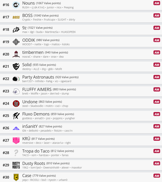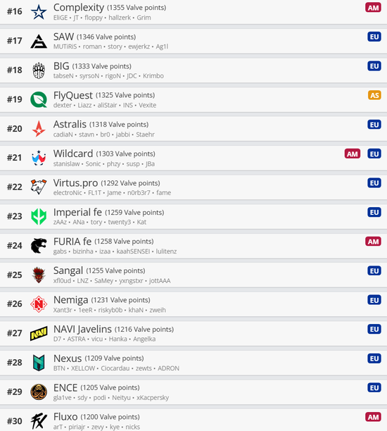 该排名将决定IEM 卡托维兹站、PGL克鲁日 - 纳波卡站以及EPL S21的参赛邀请归属。