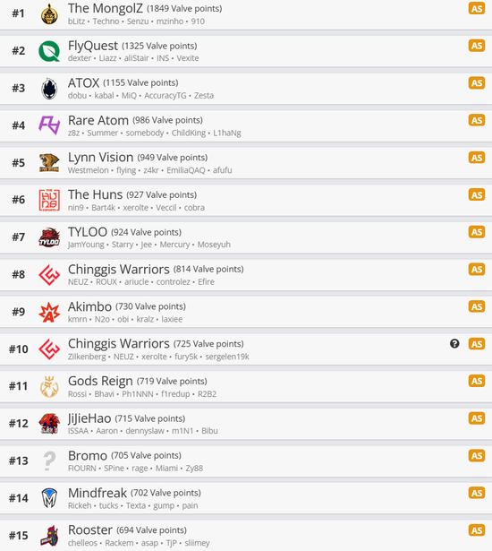 若有队伍拒绝邀请,名额将顺延给Valve地区排名(VRS)中名次紧随其后的队伍。