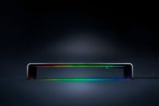 这款符合人体工程学的增高架长 500 mm,宽210 mm,可抬高显示器以保持桌面空间整洁,并配备雷蛇Chroma 幻彩 RGB 灯光和基础的连接接口,为玩家或创作者节省桌面空间的同时打造个性的桌面。