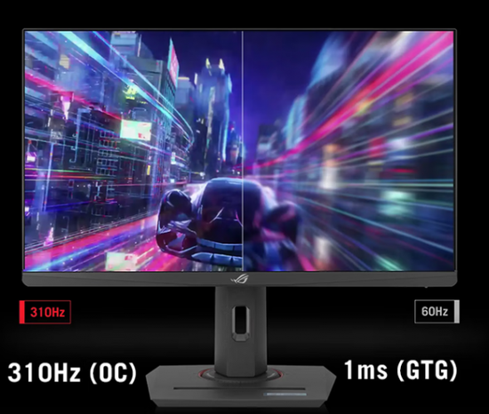 想要超高刷新率的玩家,可以考虑一下ROG绝杀25 XG259CMS电竞显示器。可超频至310Hz超高刷新率和1ms响应时间,提供快速流畅的游戏体验,有效避免拖影和运动模糊。同时还采用Fast IPS面板,结合了广视角和快速响应的优点,提供了更好的色彩表现和更快的动态画面处理能力。同时,这款电竞显示器还支持ELMB-SYNC动态影像清晰同步技术,可消除画面重影和撕裂情形,大幅提升游戏体验,满足玩家多样化的游戏需求。对于需要快速反应的FPS游戏来说,这款电竞显示器无疑是一个优质之选。