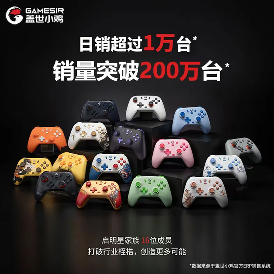 在同等价位下,盖世小鸡将成本花在刀刃上,此前推出的百元手柄「启明星」,功能更丰富、价格更低、品质更有保障,让玩家得到真正的实惠,日销过万的势头迅猛,销量突破200万台,重塑百元手柄定位,成为百元手柄的标杆。