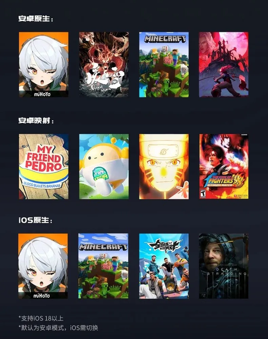 支持安卓原生、iOS原生手游,在安卓上还能通过映射的方式,去游玩一些原本不支持手柄的游戏。