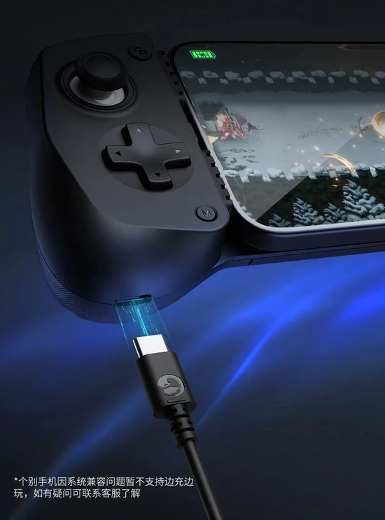 手柄左侧有一个Type-C充电口,玩家可以边充边玩,让游戏体验续航更加持久不掉电。