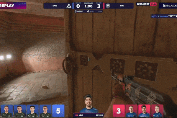 来到上半场第一个长枪局,hyped趁SAW外场控图之际清空匪厅,没有支点的土匪只得在外场等待枪毙,BIG 3-0开局。第五回合,SAW在经过一波架枪默认之后选择K1铁板夹击B区,放下雷包之后剩下一个2v2守包残局,roman大心脏助力队伍拿下第一分。随后双方在比分上你来我往,BIG这边即使调整状态再次开始连续拿分。第十一回合,土匪抱团rush铁板之后控住三楼,虽然雷包爆炸但自己经济全被断完。上半场最终局,raman抓住timing正门钻烟配合匪厅队友拿下A包点,hyped和Krimbo二打四差点成功以8-4比分结束上半场。