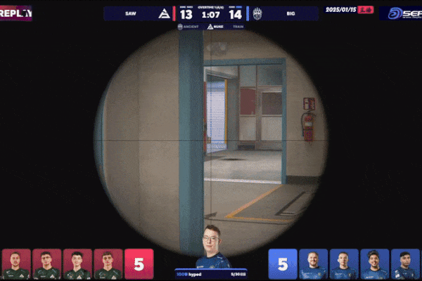 来到下半场第一个长枪局,CT在铁门混死一人拿到信息,土匪暴露进攻意图之后选择保枪比分来到10-5。随后SAW开始连续拿分,无论是外场控图还是内场一波BIG始终无法突破CT防线。第二十回合,双方在外场大混战,最后BIG的补枪更胜一筹开始掌控比赛。次回合马上转变节奏内场提速一波,闪光配合队友迅速拿下包点打崩CT经济先拿赛点。而SAW反而顶住压力在枪械劣势的情况下硬追三个赛点将比赛拖入加时。