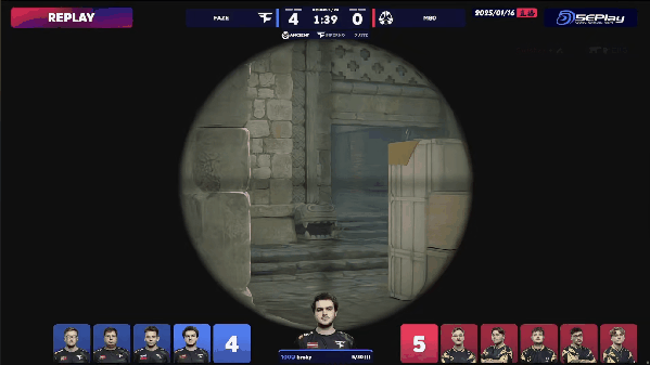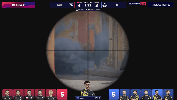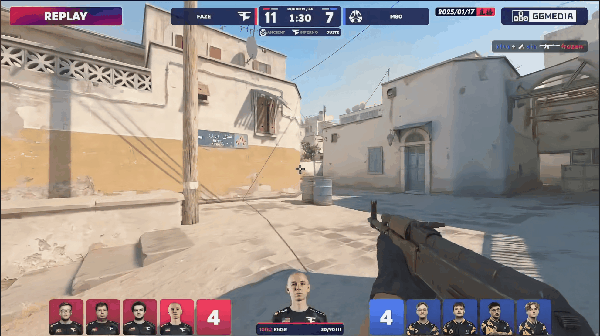 换边后M80采取中路前压防守,k1to拿到两个人头,B点的Swisher与Lake则是收下剩余人头,M80拿到下半场的第一分。长枪局s1n在A大拿到两个人头,但中路的EliGE立马找回Lake的人头,FaZe在B下包后也将人赶尽杀绝,比分8-7。后续几回合EliGE展现英勇突破,拥有自由交火权的他每每都为队友打开局面,FaZe连下四回合拿到赛点。M80追回两分,随后FaZe在第二十二回合凭借rain与broky的残局各收两个人头成功收下比赛,比分13-9。