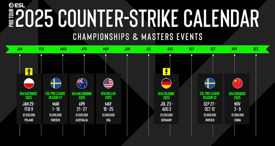 在公告中,ESL表示参赛队伍将依据Valve地区排名获邀,邀请截止时间以2025年2月首次公布的排名更新为准。在双败淘汰赛制的小组赛中脱颖而出的前六名队伍将晋级淘汰赛。