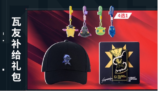 礼包内含:2024无畏契约大师赛上海站幽影帽子、盖可宠物毛绒挂件4选1、2024无畏契约首尔全球冠军赛徽章