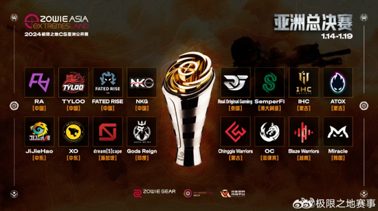 1月14日到19日,2024极限之地CS亚洲公开赛决赛在上海举行。参赛的16支队伍来自亚太的11个赛区,其中有组成新阵容的TyLoo,刚刚打过Major的RA等中国人气战队,但更多的是名不见经传的草根队伍,他们来自澳大利亚、泰国、越南、印度。。。甚至是没怎么听说过的中东地区。