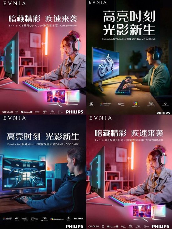 在过去的一年中,Evnia坚持“各有各的Young”的品牌理念,致力于将自由和纯粹的游戏乐趣传递给每一位玩家。Evnia深知,在这个多元化的游戏世界里,每位玩家都有其独特的游戏方式和追求。因此,Evnia依托飞利浦在科技前沿的创新实力,全面布局全尺寸游戏显示器产品线,推出了一系列代表当下高端显示技术的MiniLED、QD-OLED、高画质、高性能显示器产品,同时也兼顾了人体工学、精美外观,让每位玩家都能找到属于自己的游戏空间。