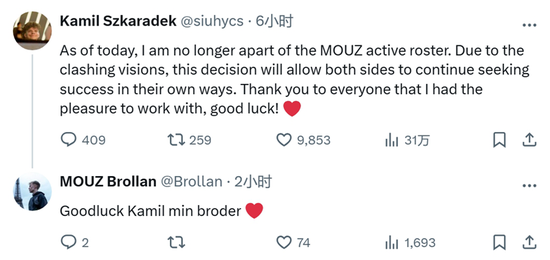 在社交平台上,siuhy也发布动态:“截至今日,我已不再是MOUZ战队的现役成员。由于愿景不合,这一决定能让双方以各自的方式继续追求成功。感谢所有与我共事过的人,祝你们好运!”