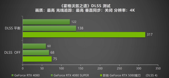 在2K分辨率下,在《霍格沃兹之遗》这款游戏的DLSS性能测试中,影驰 GeForce RTX 5080魔刃凭借自身性能也能实现119帧的成绩,能够让玩家享受到最高画质,开启最高光线追踪的《霍格沃兹之遗》。而开启DLSS 4模式时,游戏能够在保证玩家视觉效果的情况下,获得极高的流畅度,帧率高达476帧的分数。