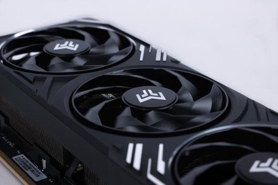 先来简单看一下,本次影驰GeForce RTX 5080金属大师OC 黑金版的散热用料规格;显卡正面三把散热风扇迎来升级,全新霜环风扇直径90mm,整体为环形链结构,扇叶共7片,均呈曲面三折角状;相较于上一代风扇,本代风扇的散热效能与噪音控制均有所提升。