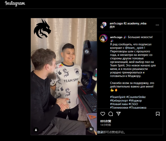 日前一位ID为Am1r的9岁小朋友在社交平台上宣布,已经和Spirit俱乐部签约,成为俱乐部的一员。