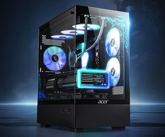水冷式散热系统在电脑硬件和其他需要高效散热的电子设备中越来越受欢迎,它相较于传统的散热系统具有无可比拟的优势,如更高的散热效率、更低的运行温度、更小的噪音、更理想的散热均匀性,同时机箱美观,且易于维护。宏碁暗影骑士·焕采用了360一体式水冷散热,支持ARGB神光同步,在狂热输出的模式下依然可以保持“清凉”稳定运转,可谓外观虽然冷酷,但内心永远狂热且永动,为长时间游戏作战提供了稳定的保障。