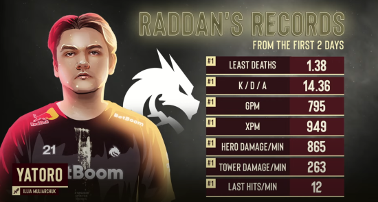 Yatoro在梦幻联赛S25第一阶段小组赛前十场比赛中(数据不含Spirit对阵GG的BO2)使用了九个英雄,仅在第十场重复选择了兽王并负于Liquid。