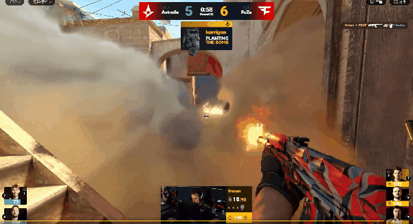 加时上半场第一回合FaZe一人未掉先下一城,次回合A队上拱门击杀掉rain,下包后frozen双杀找回人头,FaZe回防成功,比分14-12。次回合FaZe险些再拿一分,但Staehr双杀后捡起地上AK混死karrigan阻止对手强拆,比分13-14。