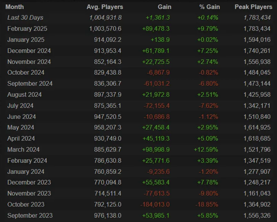 CS新版本发布以来的平均在线人数首次突破了100万大关。