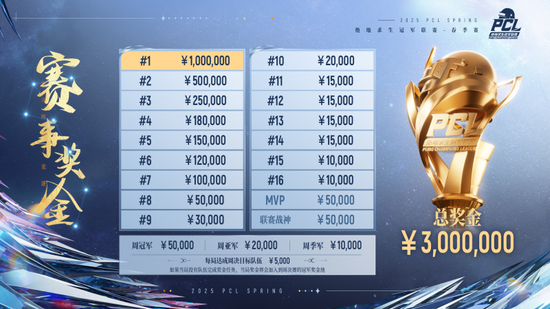 奖金还是非常丰厚的,这次总奖金是300万,第一名就可以直接拿走100万,后面依次递减,周目标达成队伍也有奖金奖励,每周的周冠军,亚军,季军都有额外奖金,还有MVP和联赛战神奖金,可谓是奖励拉满。