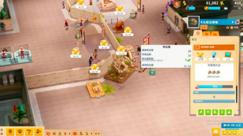 而为了让玩家更有动力造景,游戏也特地围绕造景系统设计了一系列趣味玩法。比如博物馆的收入与展品的展出状态息息相关,玩家需要在展品周围放置各种装饰物来提升热议度,获取增益奖励。再加上可以通过布景引导游客走有着固定的参观路线,。这就要求玩家根据各种因素进行策略考量,考虑该如何摆放和布景才能让此地的收益最大化。