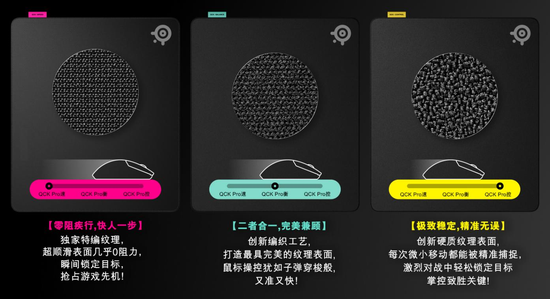 在过去20多年中,鼠标垫的性能和游戏风格适配性一直被低估。如今,赛睿打破这一局限,推出QCK Pro(QCK PERFORMANCE SERIES)系列,自定义游戏速度,为玩家带来全新的操控体验。