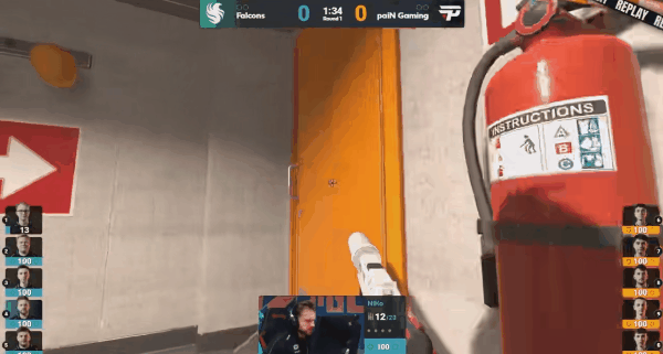 手枪局,Falcons作进攻方。snow和NiKo都互相拿到双杀,TeSeS想偷背身但被反杀,nqz收尾,paiN拿下手枪局。