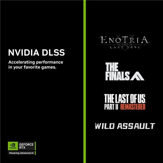 本周DLSS 4多帧生成为《艾诺提亚:失落之歌》(Enotria: The Last Song)和《兽猎突袭》(Wild Assault)带来性能倍增。《最后生还者™ 2重制版》(The Last of Us™ Part II Remastered )现已支持DLSS帧生成、DLSS超分辨率及DLAA。