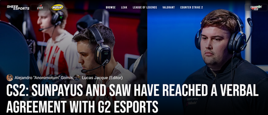 据外媒Sheep Esports的报道,G2战队希望在BLAST.tv 奥斯汀Major赛事结束后,从HEROIC战队挖来SunPayus及sAw。该报道称,这笔交易“有待Valve和BLAST方面的确认”。