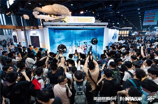 赛事与漫展的深度融合成为本届艾欧尼亚杯最大亮点。舞台区经典曲目串烧表演,Coser还原游戏角色与观众互动,召唤师峡谷主题灯光秀与“天气站”快闪体验区吸引大量二次元爱好者驻足。