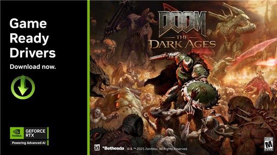 NVIDIA发布全新GeForce Game Ready驱动,为《毁灭战士:黑暗时代》(DOOM: The Dark Ages)优化GeForce PC与笔记本电脑性能表现。本作采用原生idTech 8引擎光线追踪技术,并由DLSS 4多帧生成与NVIDIA Reflex增强性能。新驱动支持《新世界:永恒》(New World: Aeternum)的DLSS 4多帧生成与NVIDIA Reflex更新,15款全新或更新的游戏支持NVIDIA app DLSS优设、7款全新G-SYNC Compatible游戏显示器,以及2个全新优化游戏设置(OPS)预设。